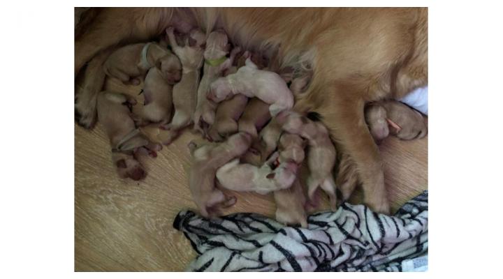 родились четырнадцать щенков - десять мальчиков и четыре девочки
