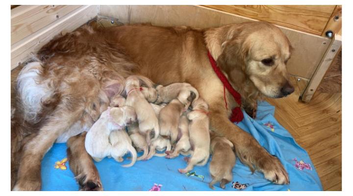 родились одинадцать щенков - семь мальчиков и четыре девочки