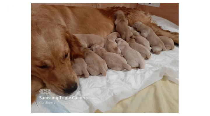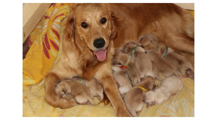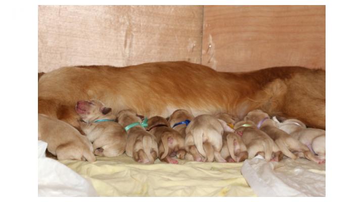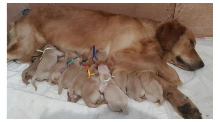 родились одинадцать щенков - семь мальчиков и четыре девочки