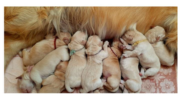родились девять щенков - пять мальчиков и четыре девочки